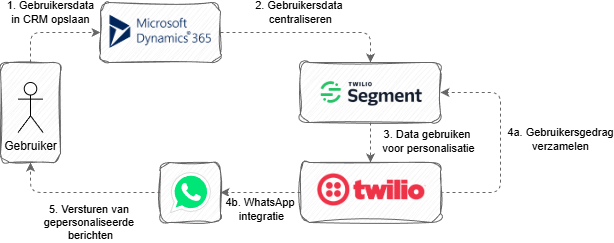 De echte kracht zit in het gebruik van centraal databeheer via een CDP ("Customer Data Platform"), waarin data vanuit beoorbeeld een CRM-system gebruikt kan worden. Klantgegevens zoals naam, taalvoorkeur, communicatievoorkeuren, type klant, recente interacties of lopende dossiers kunnen centraal beheerd en automatisch ingezet worden in de communicatie. Deze parameters kunnen we de berichtgeveing naartoe de klant dynamisch personaliseren. Denk aan variaties in boodschap, timing of tone-of-voice... Uiteraard is de opt-in van de gebruiker hierbij essentieel: alleen klanten die expliciet toestemming geven, worden gecontacteerd. Dit zorgt niet alleen voor compliance, maar ook voor meer vertrouwen en hogere betrokkenheid bij uw bedrijf.